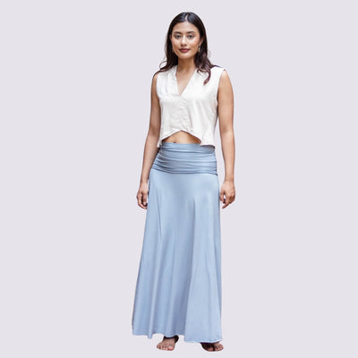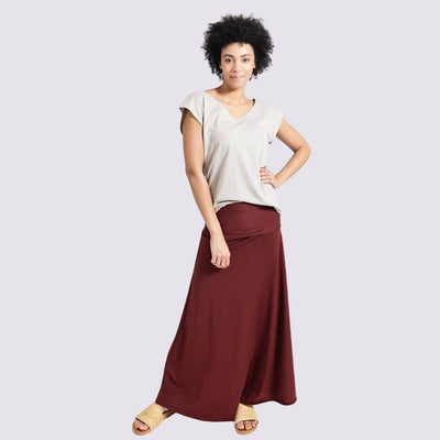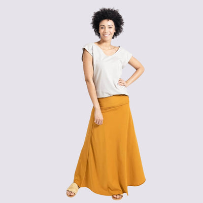 The Sonder skirt waistband is a single turndown layer, rather than double like all our other pieces. This means it's quite streamlined and allows this piece to lend itself to a more body-con silhouette (if you prefer it like that).