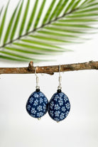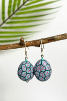 Our beautiful flat mala earrings feature a paprika and sky blue coloured polymer clay design. The colours featured are contrasting bold colours, and the final effect is impactful! These are lightweight earrings, and are made using quality sterling silver findings.