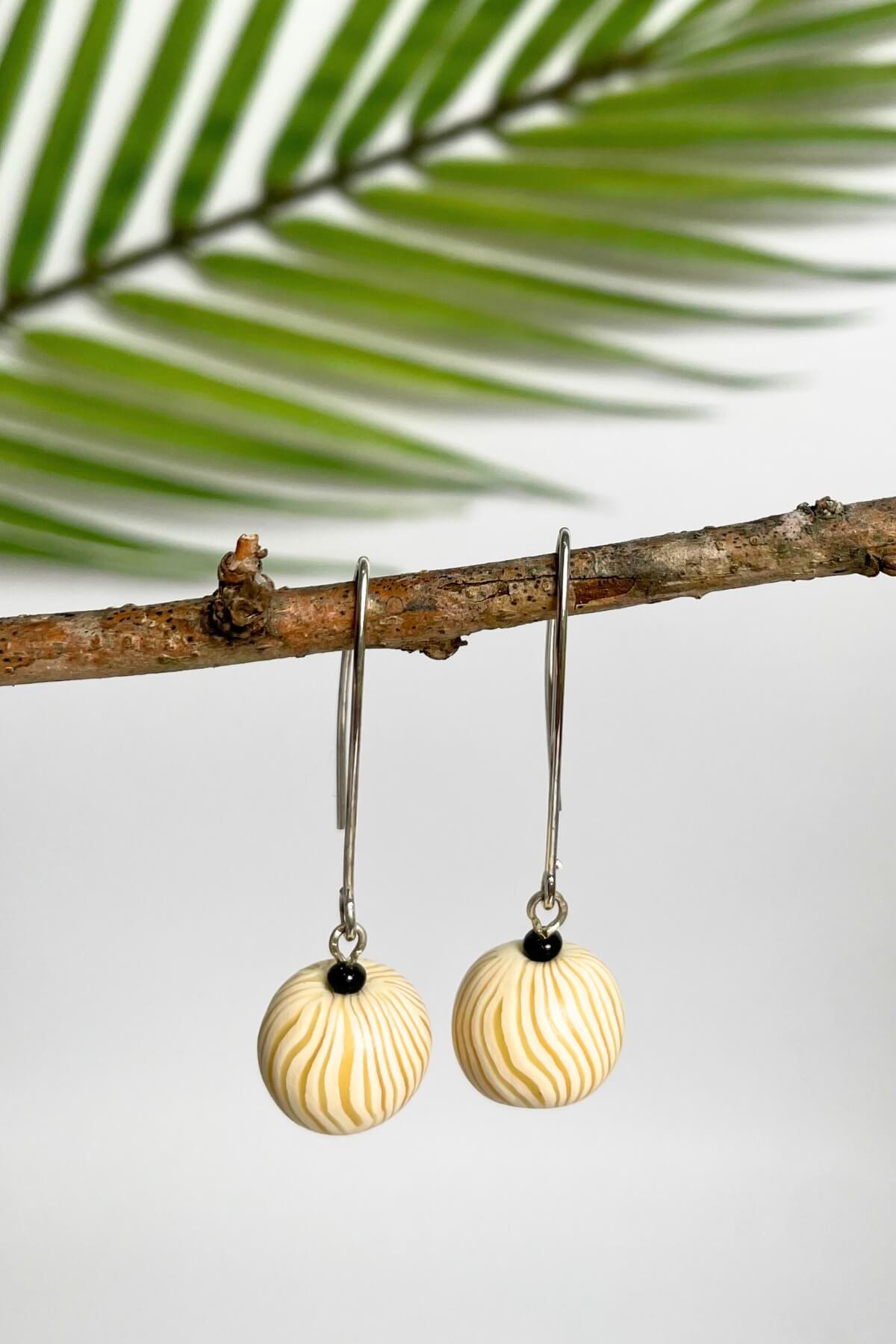 Our beautiful round single drop earrings feature actual spice coloured balls. The colours featured on each ball are bold earthy colours, and the final effect is impactful! These are lightweight earrings, and are made using quality sterling silver findings.