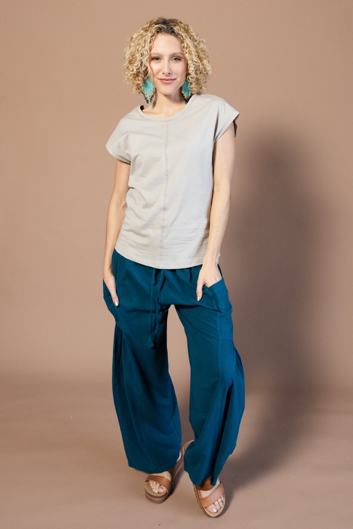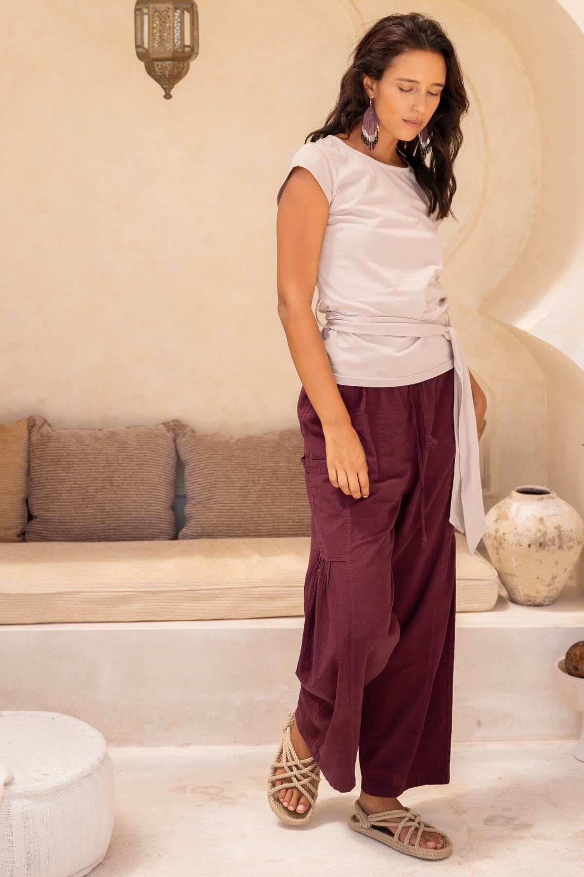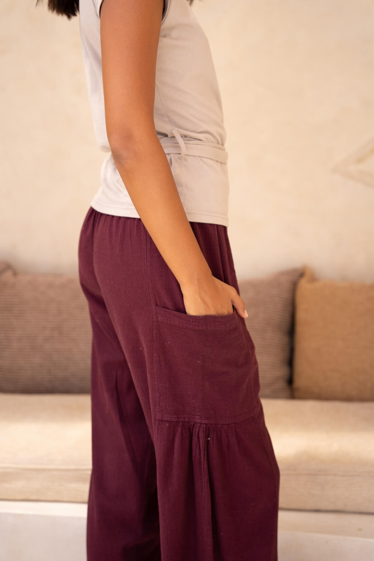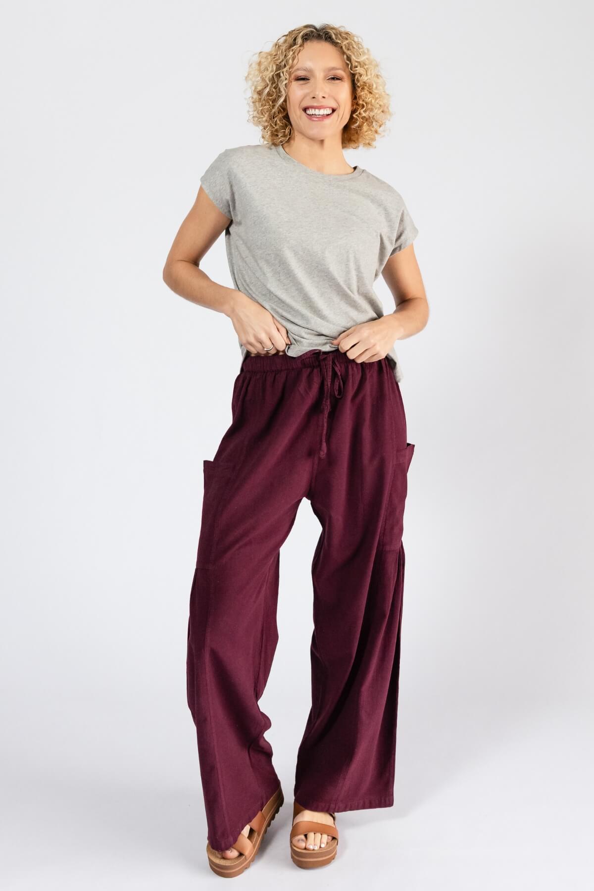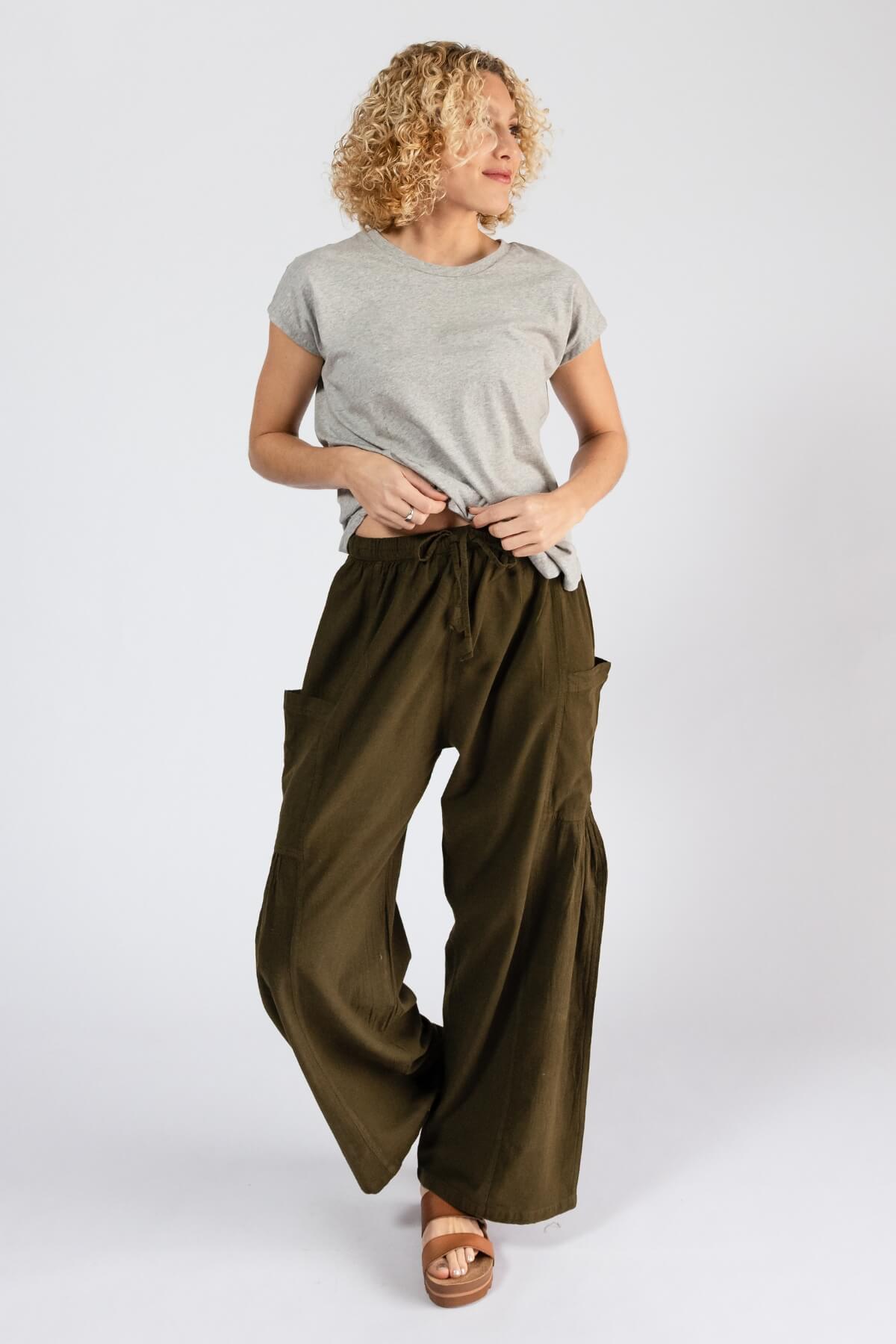 - Wide leg cotton palazzo pants