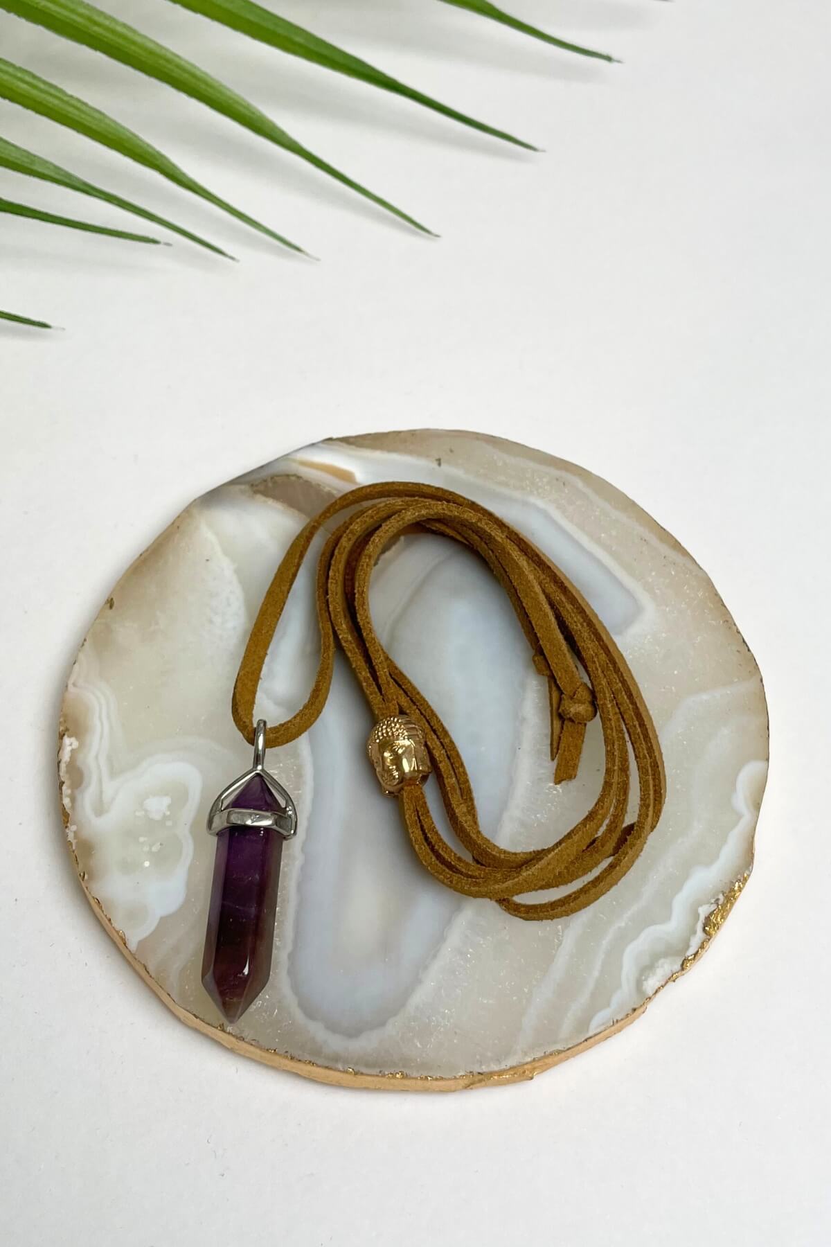 Our suede necklaces are all handmade in Kathmandu, Nepal. Featuring a natural look-a-like crystal pendant, all our suede necklaces are fully adjustable length, and look great teamed with just about anything.