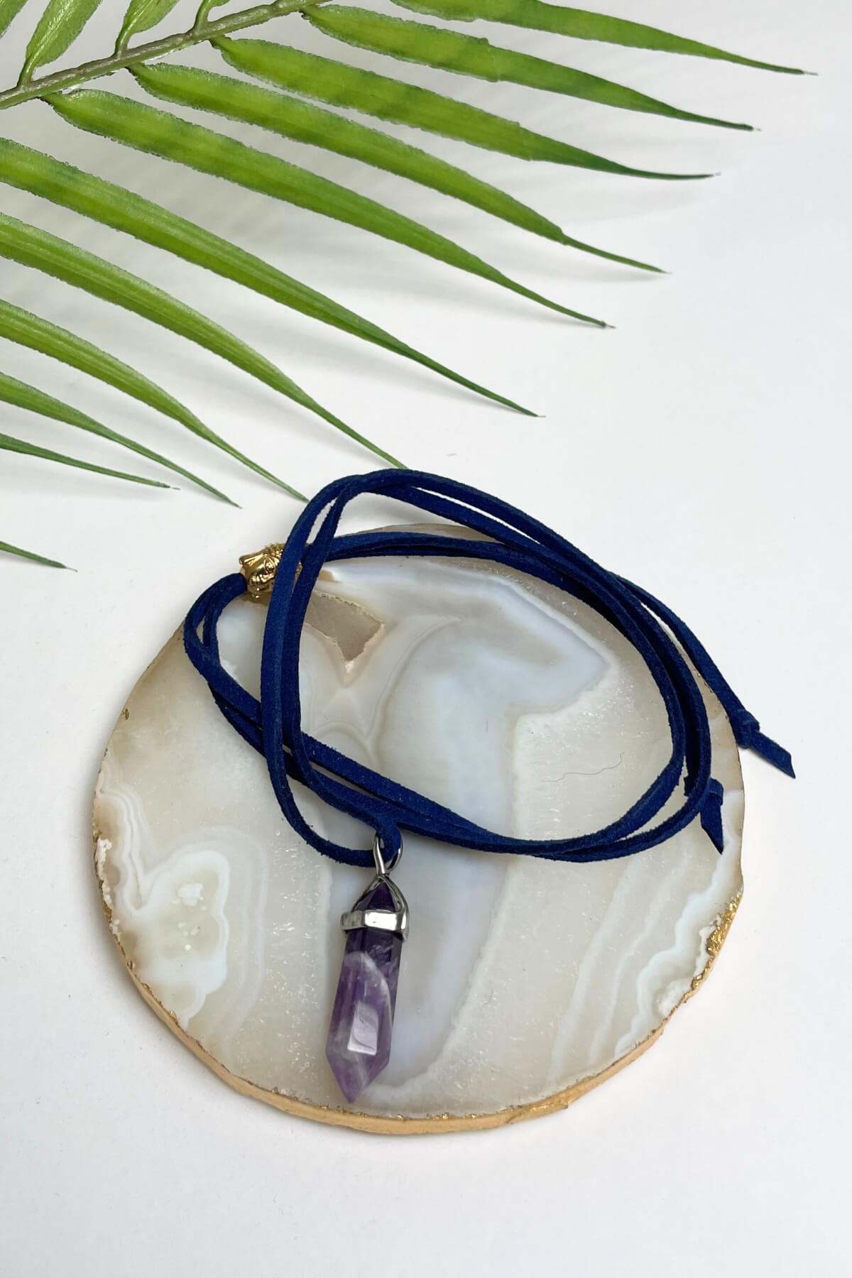 Suede Necklace - Purple 'Crystal'