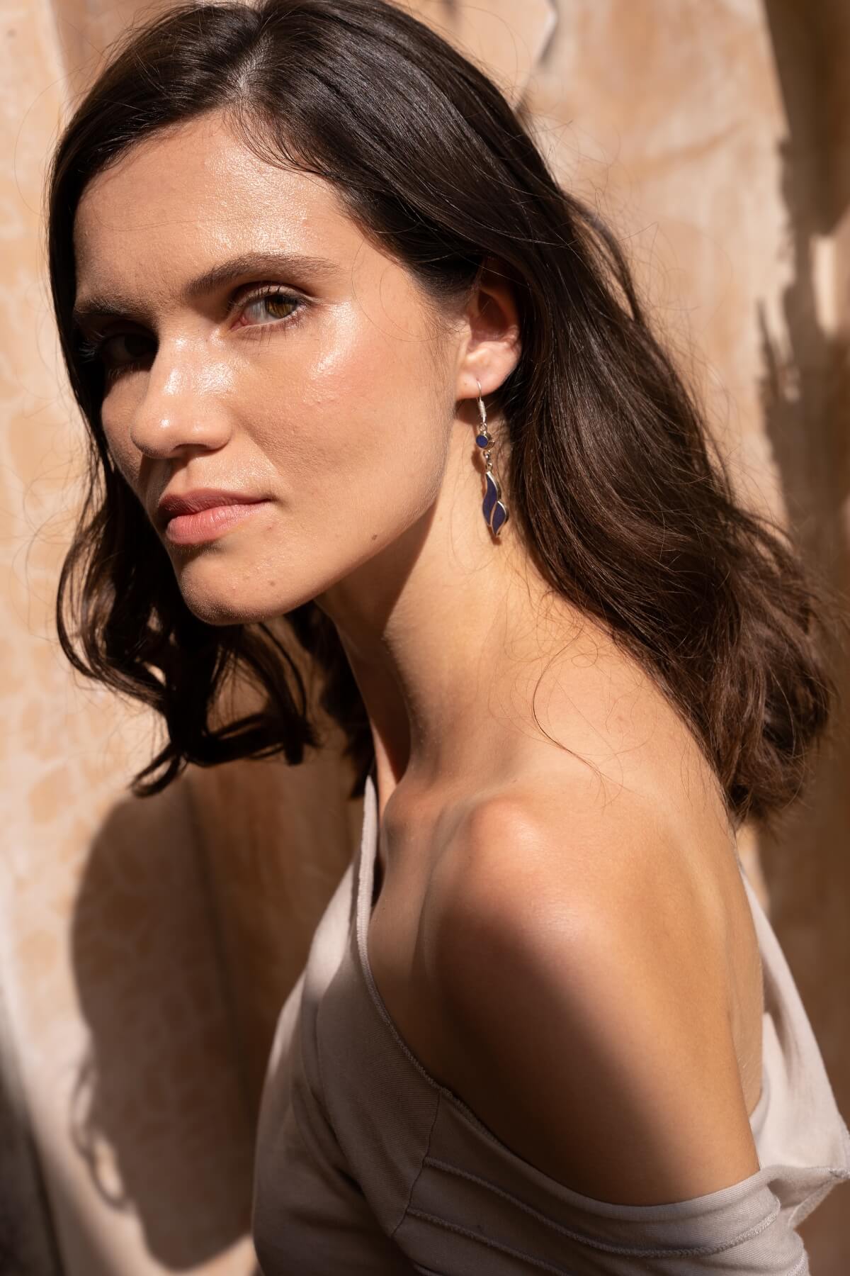 Our delicate handmade Tibetan earrings look great paired with any outfit, and are designed to go perfectly with our traditional mala necklaces and bracelets. Our Luniva earrings feature an long wave drop with inlaid beads and intricate designs.