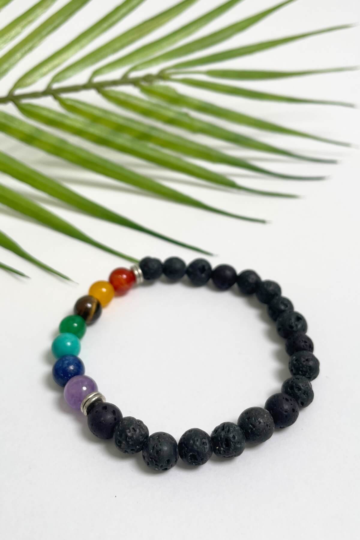 Our lava bead 7 chakra bracelets are handmade using authentic lava stone beads and the 7 colours of the chakra. Our lava bead bracelets are designed to be worn after adding essential oils to the stones (just one or two), which will diffuse throughout the day while wearing.