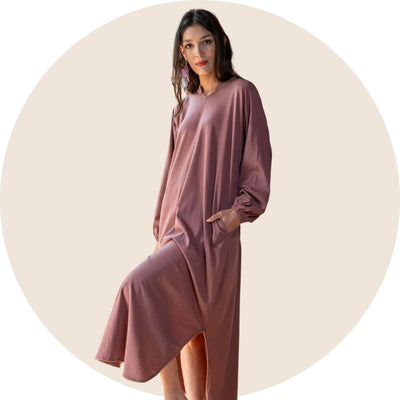 "I gasped when I took this dress out of the parcel because it was exactly what I'd been looking for. Very light fabric, cool and loose fit, nice neckline, not to baggy, and a beautiful soft colour that will suit everyone's completion."