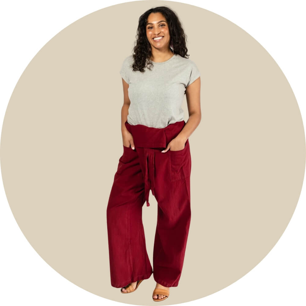 Browse our range of cotton and organic cotton trousers and shorts, all ethically made in Nepal by our long term partners 🖤