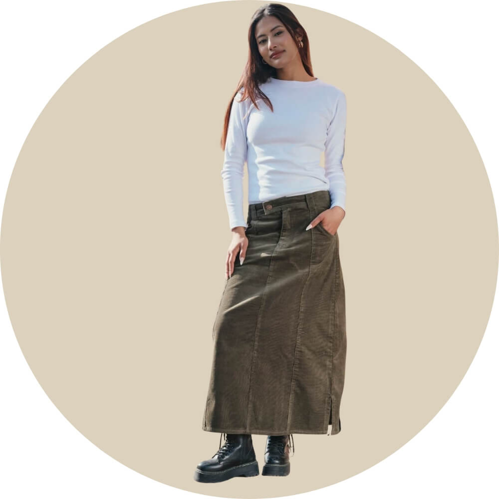 Browse our range of loomed cotton, organic cotton and corduroy skirts, all ethically made by our partners in Nepal 🖤