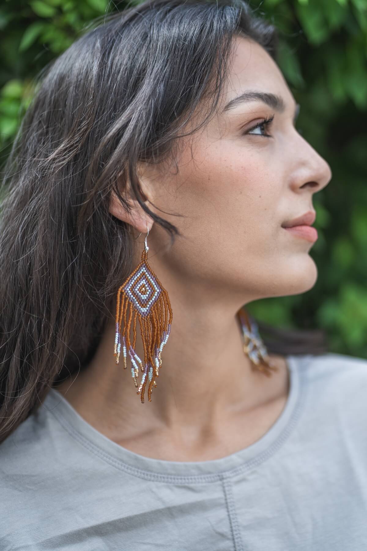 Our beautiful glass bead earrings make a bold statement due to the colour range and size of the piece. Featuring handmade glass beads, our handmade earrings are lightweight for their size and are a statement piece that add impact to any outfit.