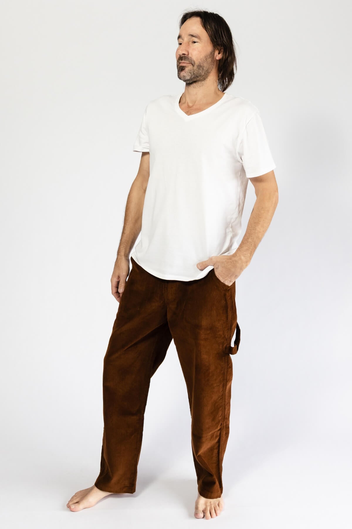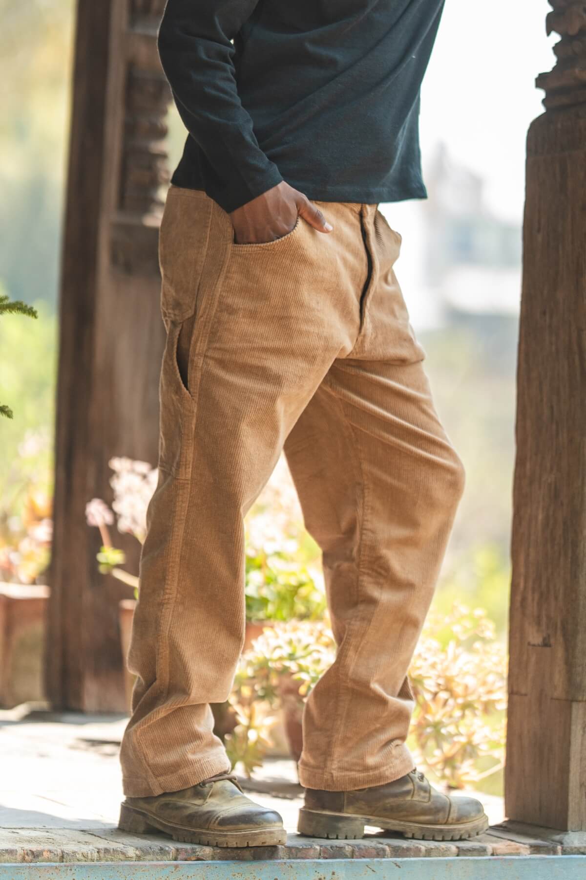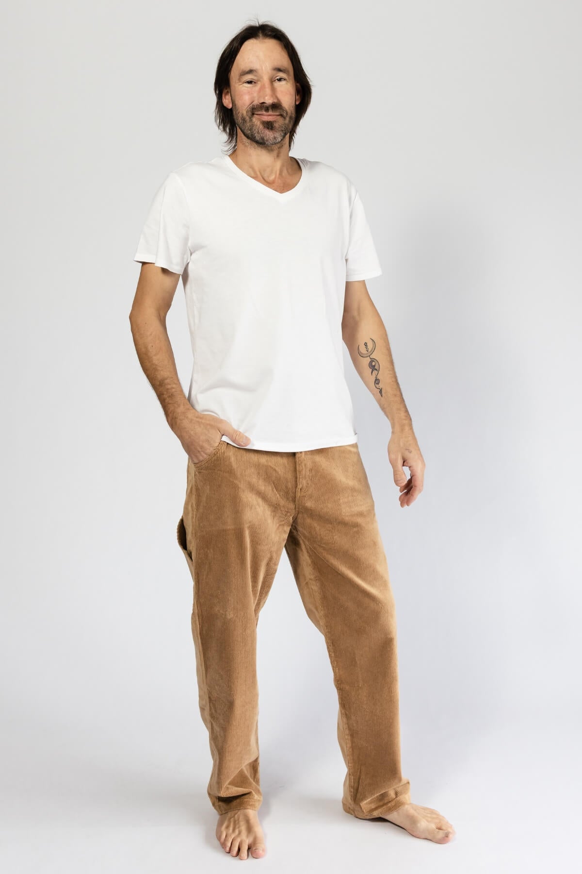 Our super comfortable new corduroy pants for men will be your go-to piece this season. Featuring pockets and a button up / zip waistband, our new corduroy trousers will be a staple of your wardrobe this season. Our corduroy pants feature a straight leg style and medium weight cotton corduroy fabric. They also feature our signature Surya 'hammer' handle at the rear.