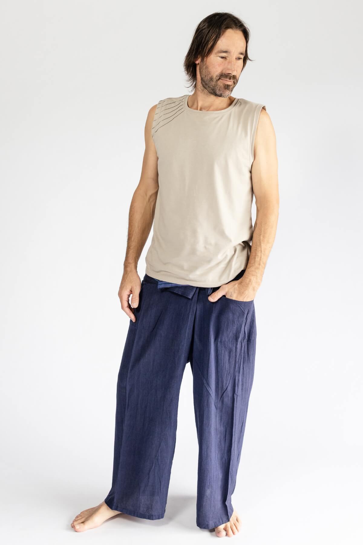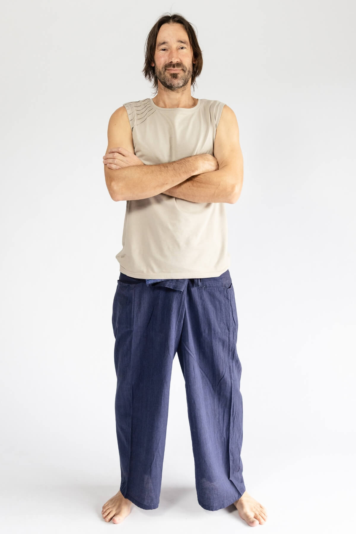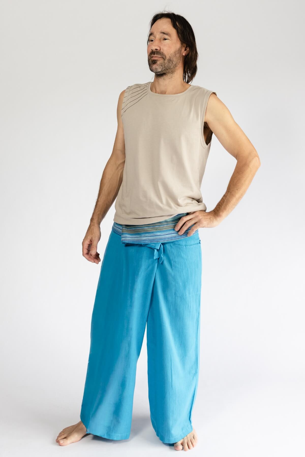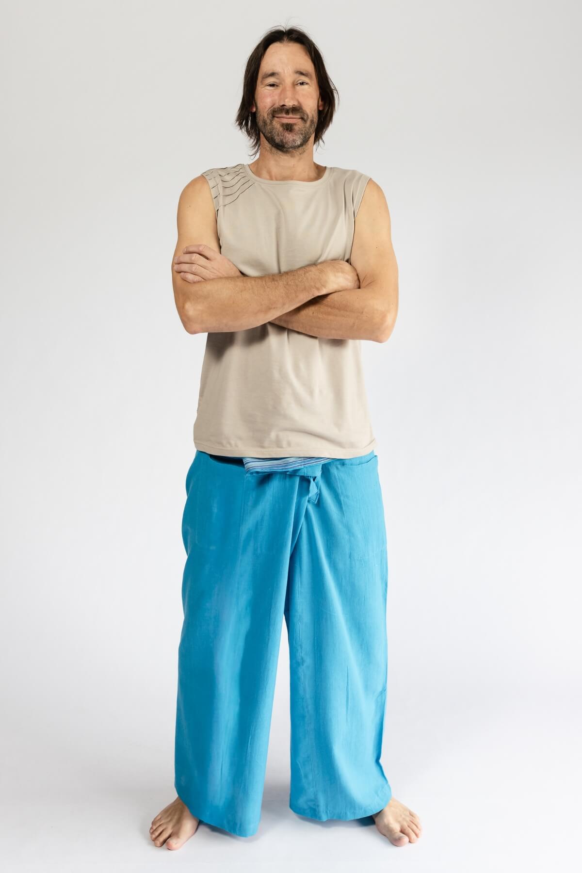 Our super comfortable fisherman pants for men and women are made using light cotton fabric and low impact dyes.